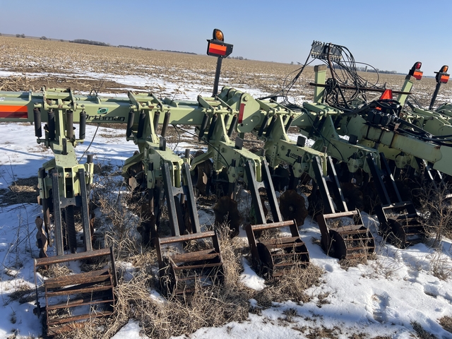 12Row orthman strip till toolbar. Good condition, set up for liquid application has John Deere Rate controller. John Blue Hydralic pump. Red ball visigauges. Owner/operator.