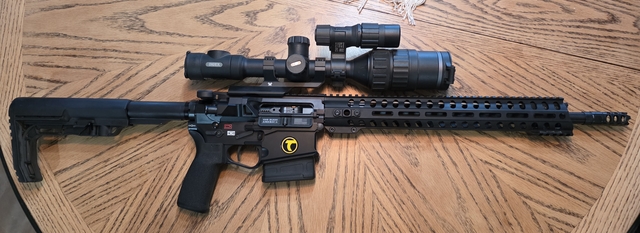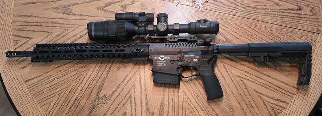 16" barrel, Pulsar C50 scope with batteries/charger and a Timney Comp. 3lb trigger. Might trade for a feed truck or cattle.
