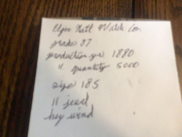 1880 Elgin Nat'l Watch Co. key wind. opening front and back. Second hand missing. Thick glass crystal. $40 cash. No checks. No text. No delivery. Contact me here or at: six two 079254 nine 8. Keep trying, I'm sometimes hard to get.