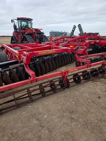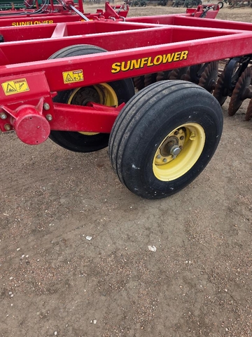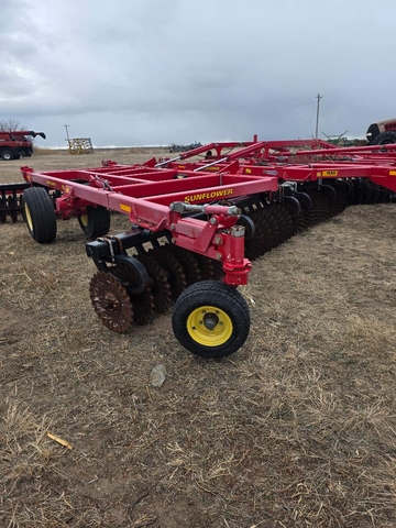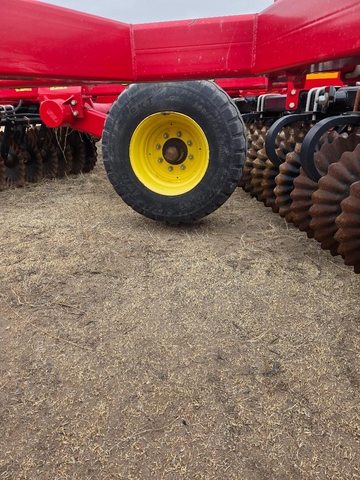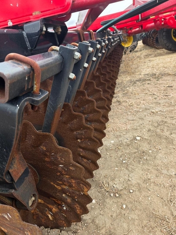 33 ft wide. Sabertooth blades, new in 2023, less than 1000 acres on the new blades. Hydraulic lift rear baskets. Tires and hydraulics hoses in good condition. No rust. Call nine7zero6three000fivesix.