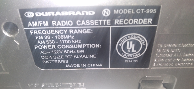 Durabrand AM/FM Radio Cassette Recorder Model CT-995 Tested and Working
