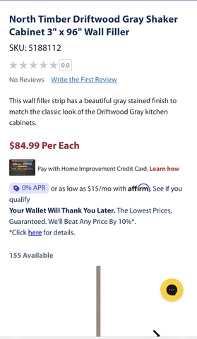 18 ea: (F396-DFG) 3x0.75x96" wall filler strip