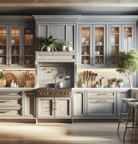 NorthTimber Cabinetry Misc. Inventory. All solid wood Shaker style, in (hand-stained/glazed) Driftwood Gray finish. All new in boxes.