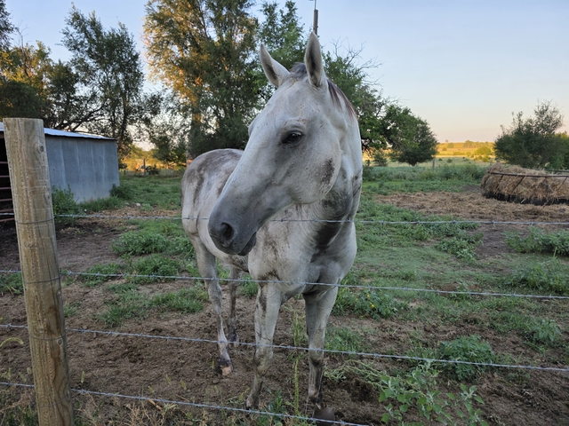 11 year old papered Ottb. Western and english broke. Needs strong rider not for kids. 15hh, shots and teeth up to date. Food motivated but requires front shoes. Has a current face laceration that requires attention. I will send him with food, meds and maybe even some tack. Wasn't a good fit for me as a beginner, my loss your gain. Was told he also ran barrels but only won one track race.