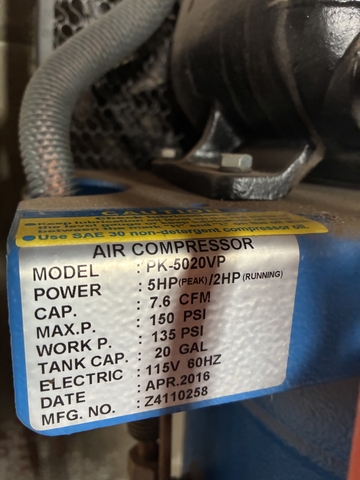 Puma air compressor. Bought new in 2016. Has had an easy life. Been in storage for the last 4 years. Brand new on the internet for 879.99
