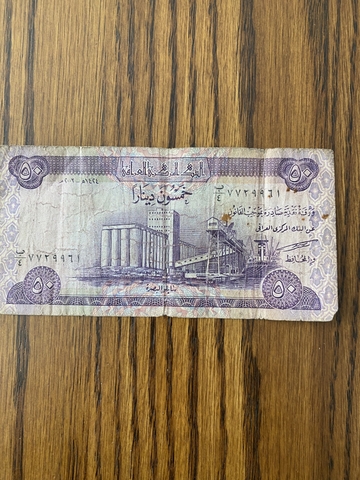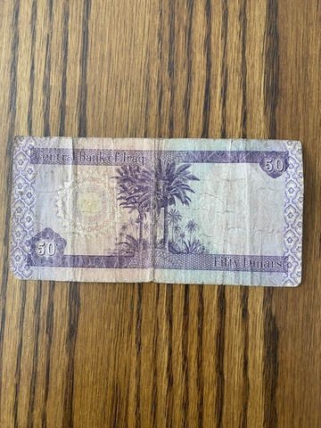 This was issued in 2003 after the fall of the previous government. It was withdrawn from circulation in 2013 and 2015. It is located in McPherson Kansas. I'm listing other Iraqi cash. Please check my listings. I am willing to ship with payment through Venmo or PayPal. Shipping will be five dollars because I only ship with tracking information on the package. It won't matter whether you buy one or all five pieces that I'm advertising shipping will still be five dollars. Feel free to ask any questions