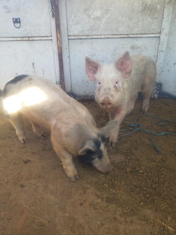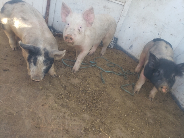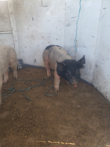 Pigs looking for a new home should weigh around 100 to 120 lbs. You can send a message to 620 253-7335.