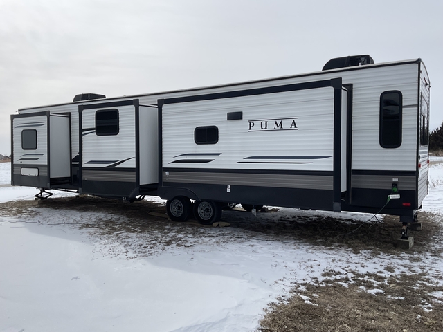 One owner lightly used and all in excellent condition. 4 slides, washer & dryer, Queen bed with mid-Bunk, 2 Recliners, two tri-fold sofa's, dual entry, smart tv, electric awning with LED strip, full size frig with ice maker, kitchen island, dual AC with 50 amp hookup. Includes Blue Ox weight distribution hitch for 2 1/2" receiver. These are $55K new, get this one for $35K. You can contact me at 785-243-4631