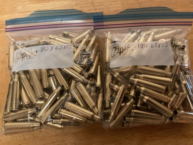 For sale 6.5x55 brass reloadable $.50 each tumbled.