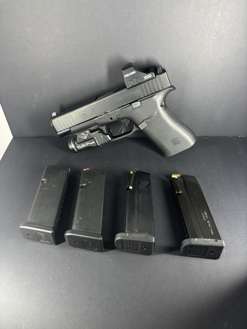 Used in VERY good condition Glock 48 MOS. Comes with a Holosun 407K red dot, Streamlight TLR7X-SUB weapon light, TREX ARMS Sidecar holster with extra mag holster, 2 Glock 10rd mags, 2 Gen 3 Shield Arms 15 rd mags, AND Shielf Arms metal mag release.