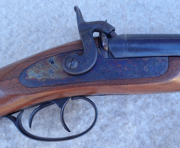 This Pedersoli Side by Side Black Powder Shotgun is slightly choked and features a walnut checkered stock, engraved locks, and blue barrels with inside chrome. This classic design features a 28-9/16" blue barrel and has a brass post front sight to get you on target. The engraved locks give this shotgun a classic look to go along with the walnut checkered stock. Fixed and Modified chokes.