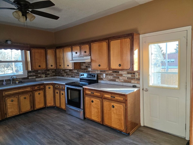 705 N. First Ave. in Norton, Ks, Move in ready 2+ bed, 2 bath home with many updates. New HVAC system and upstairs flooring last month. This home has a living room, dining room with a wood burning fireplace, and kitchen with main floor laundry. There are two bedrooms and one bathroom on the main floor. The basement has a large room with two closets that could be used as non-conforming bedrooms and a bathroom with a shower. There are multiple storage rooms in the basement and a detached single car garage. Large fenced in back yard with a storage shed.