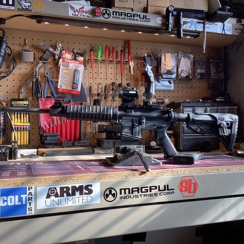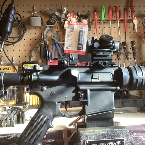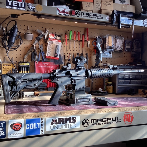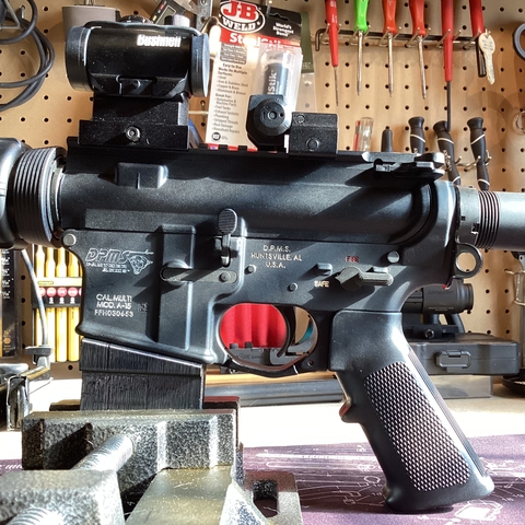 DPMS Panther Oracle 5.56. Rifle has upgraded stock, Bushnell red dot and magpul magazine. Design on rifle is from the sun shinning through the window shade. Great truck gun. $500.00 o.b.o 620-874-0272 Just selling for money to finish another project.