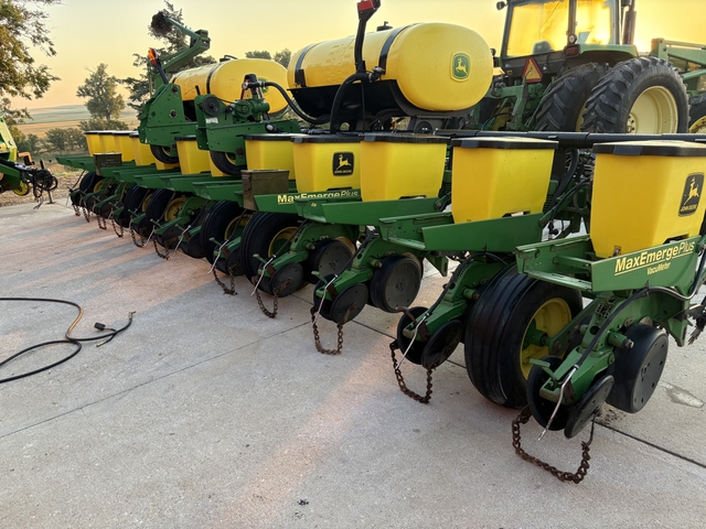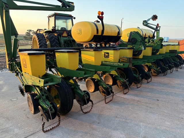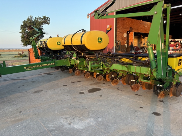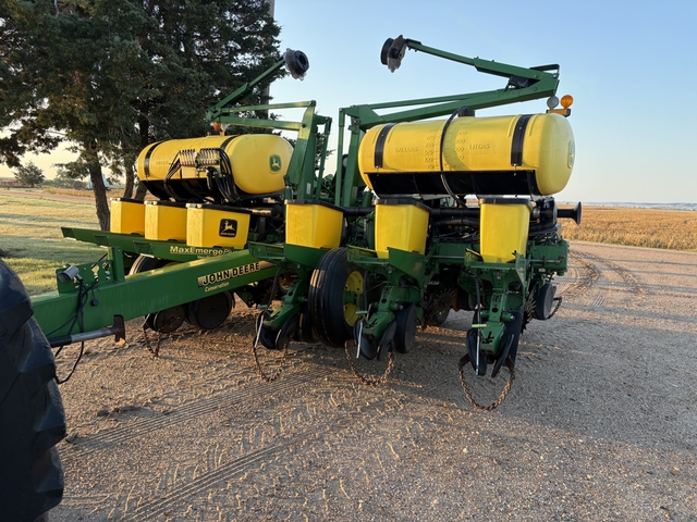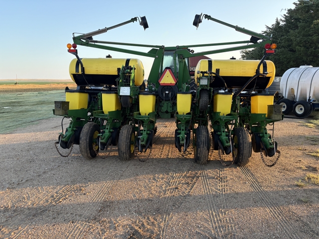 12 Row 30", John Blue Fertilizer pump ground drive, currently applying fertilizer behind the row, have other fertilizer openers included, (2X2 and 360 Bandits) Row cleaners, coulters, Milo seed disk, new tanks in 2024, 450 gallon capacity, Wilger Flow Indicator 250 seed monitor. Always cleaned, winterized, and shedded. Good planter used in 2025. 785-656-2614