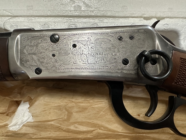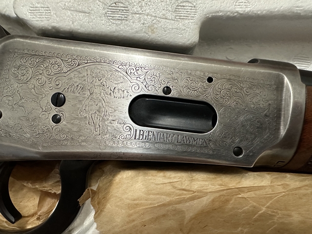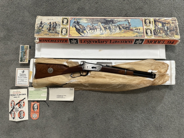 1977 commemorative edition Legendary Lawman Marlin with a matching box of ammo. Unfired, still in the box model 94 30-30 with all original paperwork. Excellent/Like new condition.