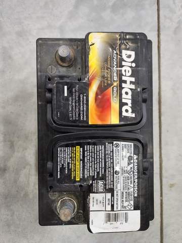 Die hard advanced Gold 12 volt AGM battery. The battery is around 4.5 years old. Was working just fine when removed. Wanted to upgrade to a optima yellow top is the only reason we replaced it. G48 battery ,760 cca@0°F. Call or text 785-three,zero, two-0444