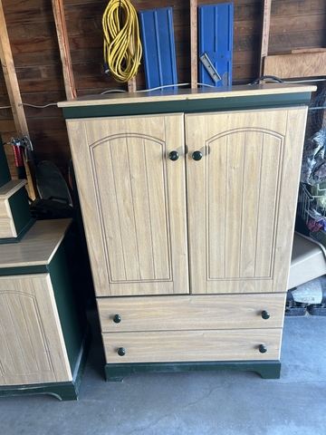 Dresser with mirror 76” high 64” side to side 17” front to back. Mirror lights up.