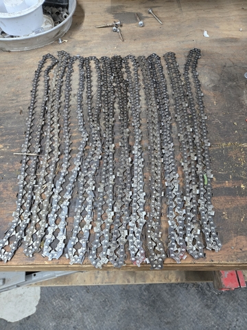 11-Oregon chains for 16" bar, 59 drive links, .050 3/8 chain. Alot of life left. FREE if they'll work for you. they dont fit my Stihl's. Supposed to fit Homelite, Jonesred, or Makita. call or text 620-242-6333