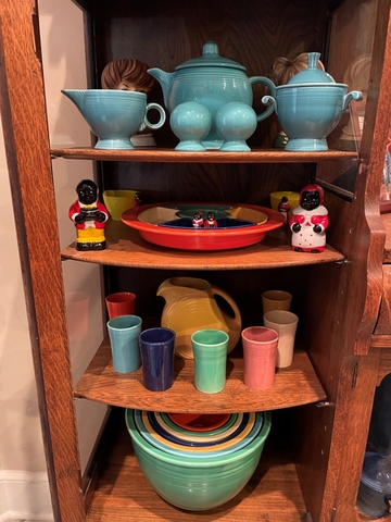 Selling will be pine, walnut and oak furniture including pine dry sinks, walnut folding top table, and oak folding chair/table, a Galeria Riccanonna Monaco vase, Bittersweet, Clematis, Ixia, Peony, Snowberry, Water Lily, White Rose and Zephyr Roseville pieces, head vases, a variety of Fiesta and Carnival glass pieces, pictures, Indian items including beaded pieces, Red Wing churn, Art glass lamp, fancy table lamps, two unique mantel clocks, Harley collectables, proof sets and restored Coronado, Crosley, Delco, Emerson, Fireston, Philco, Real Tone, Tru Tone, Silvertone, Admiral, Zenith and other radios.