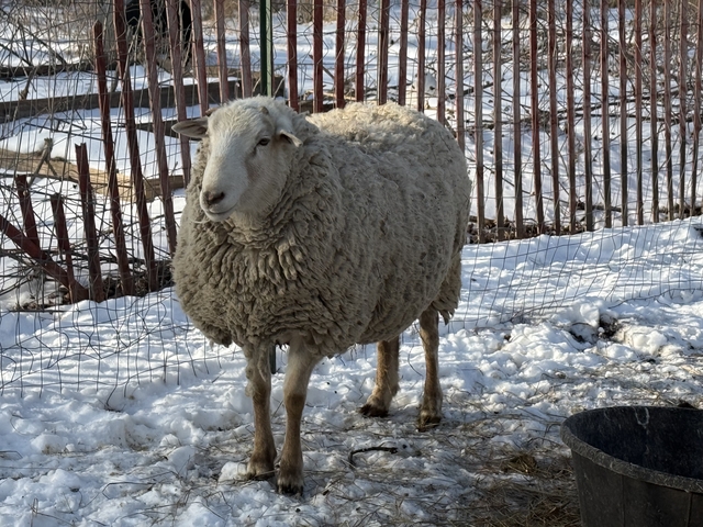 2 year old Dorset cross ram nice big guy, lots of wool, does have a little bit of scur horn, $200