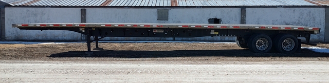 48' long X 102" wide aluminum flatbed. Tandem sliding axles. GVWR 73,000 lbs. Tire size 295/75R22.5. Title in hand. DOT inspection good until March. 14 straps go with the trailer.