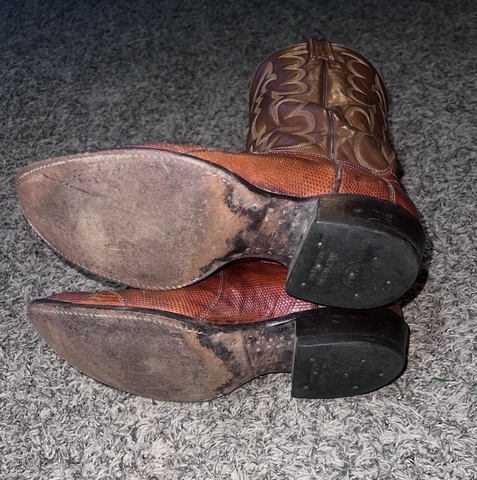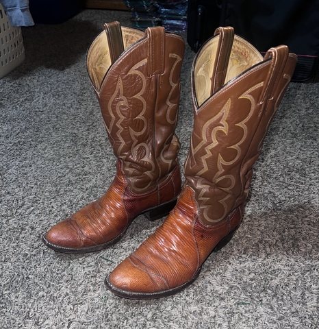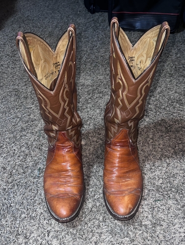 Have a Nice pair of Exotic Mens Tony Llama “Lizard” Cowboy Boots in a size 9 1/2 D with round tip. These are lightly used but still in very good condition. These are not cheap boots, very quality boots. (NO HOLDS)(No Shipping)CASH ONLY) LOCATED IN HAYS, KS REDUCED)