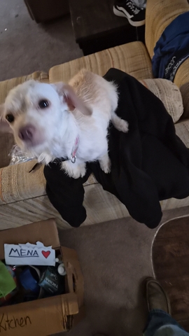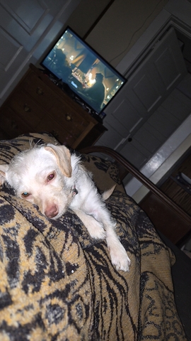 She is around 6 months old give or take. I believe she is a chiwahwah-terrier mix. She was an ex acquaintances pet. She is allegedly a (mental) service animal. Owner brought her here when she move here, left her at my house when she moved out and refuses to come get her. I am not supposed to have pets at my house and can not surrender her to the city pound. She is half assed potty trained. She goes through phases where she's really good amd goes outside then all of a sudden she's going inside. She is a really loving dog and I hope she can go to a loving home.