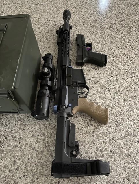 I have a 10.3" AR Pistol chambered in .223 Wylde for sale. It is an Anderson lower and Matrix upper and handguard. It has an adjustable gas block to go with the threaded barrel so it can be shot with or without a can. I currently have a different red dot on there but would sell with the Strike eagle. Just selling to get back to a full length AR. Shoot me an offer or trade.