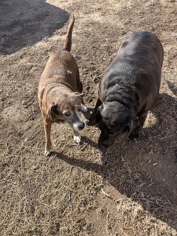 A friend of mine, Vietnam Vet, has to move into a soldier's home. We desperately need a new home for his two dogs. One is a red heeler mix. Her name is KK and she's brindle colored about nine or 10 years old. The other one's name is Max And he's a black lab mix. He's a year younger than KK. KK is very energetic and lovable loves to play ball, Max likes to be a lump on a mattress lol I don't believe he has any health issues, but he is overweight and needs help with his nails. They're both good house trained inside dogs call 620-872-4171