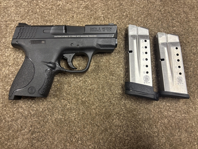 Smith & Wesson M&P Shield 9mm. 3.1" barrel. 7 and 8 round mag. Comes with the box. Very good condition. $350 obo. Not interested in trades. Also have a Beretta APX on separate listing. Would be willing to make a deal on both.