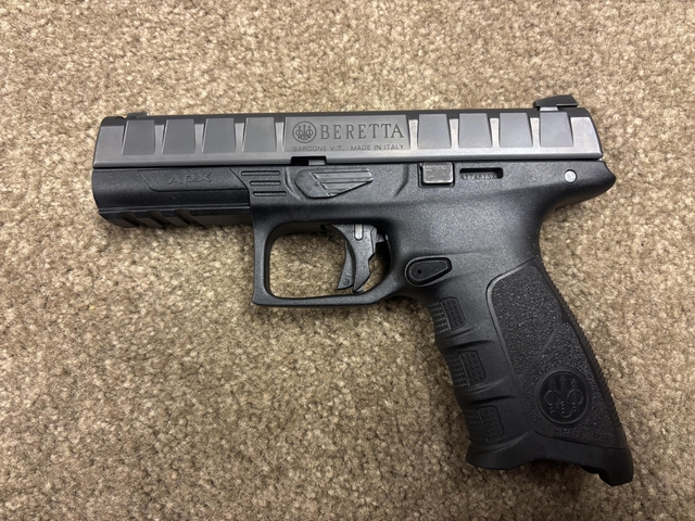 Beretta APX Full size 9mm. 4.25" barrel. Made in Italy. Comes with hard case and (2) 17 round mags. In like new condition. $350 obo. Not interested in trades. Also have a M&P Shield 9mm on a separate listing. Would make a deal on both.