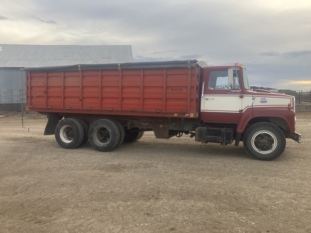 1980 Ford 7000. 3208 caterpillar engine. 18ft box with rollover tarp. 10 sod transmission. 22.5 tires. call 7eight5 2eight0 0886