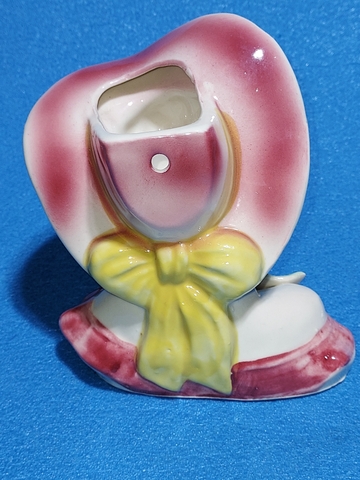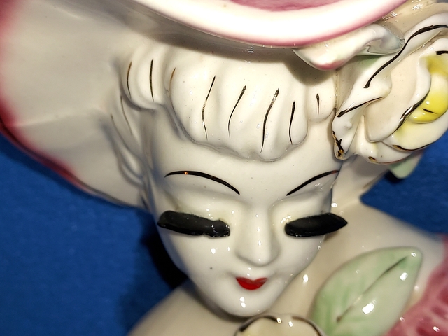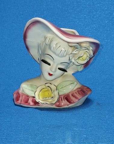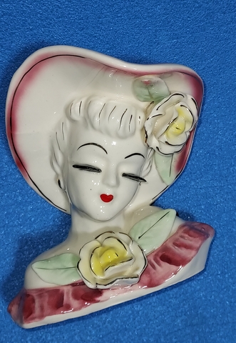 This is for a VINTAGE Ceramic Lady Head Vase Glamour Girl Wall Pocket 5 1/2" TALL. EXCELLENT CONDITION. NO DAMAGE. The Vintage 5 1/2" GLAMOUR GIRL Lady Head Vase in PINKS & Gold is a stunning piece of decorative pottery. Made of porcelain and featuring a multicolor design with a pink and gold palette, this art pottery vase showcases a woman's head as its subject, adding a touch of elegance and whimsy to any space. MAY BE Lefton BUT THE STICKER HAS BEEN REMOVED. BEAUTIFUL COLORS. FROM MY WIFES PRIVATE COLLECTION. NO CHIPS OR CRACKS. ORIGINAL STICKER IS MISSING