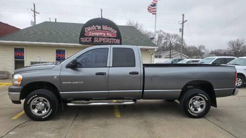 2006 DODGE RAM 2500 QUAD SLT 8 FT LB 5.9L 6CYL TURBO DIESEL- PWR CLOTH- WINDOWS- LOCKS- CRUISE- CLIMATE CONTROL- PREMIUM STEREO- CD PLAYER- RUNNING BOARDS- PWR HEATED TOW MIRRORS- MUD GUARDS- 5TH WHEEL- SPRAY IN BEDLINER- NEW TIRES- ALLOY WHEELS- TOW PKG! STOP BY, OR CALL 308-384-2554 ASK FOR DAN! SALE PRICE $24,899 152K MILES! CONSIGNMENT! Visit dicksmotorcompany.com