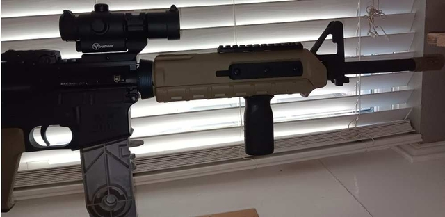 Magpul FDE MOE-K2+ pistol grip. The MOE-K2+ Grip combines reinforced polymer body construction with comfortable, wrap-around rubber overmolding for maximum firearm control in adverse environments. Similar in concept to the smaller MOE-K, the MOE-K2 is a drop in upgrade for AR15 / M4's that offers a more vertical grip angle, but in a full-size grip design. Magpul MOE FDE Mid-Length gas Handguard. 3 o'clock side 9 slot picatinney rail. 9 o'clock side 5 slot picatinney rail. 12 o'clock side 11 slot picatinney rail.