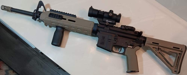 AR 15 Rifle 5.56 NATO With optic. DTI 16" Heavy barrel. 5.56 NATO 1x9 Twist.