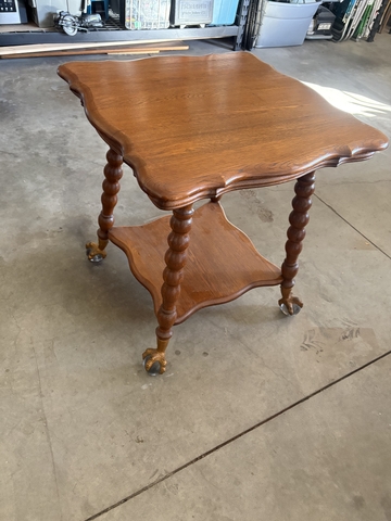 Solid oak parlor table excellent shape. Not sure of size glass ball feet either 3 or 4 inch balls. Table top is 28 x 28 inches and 30 inches tall. Asking $400 or best offer located in Hays you pick up. My cell is 785-623-7188