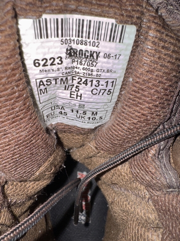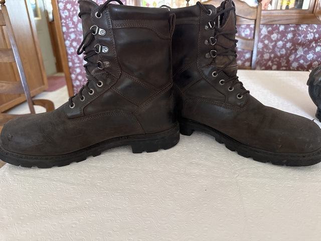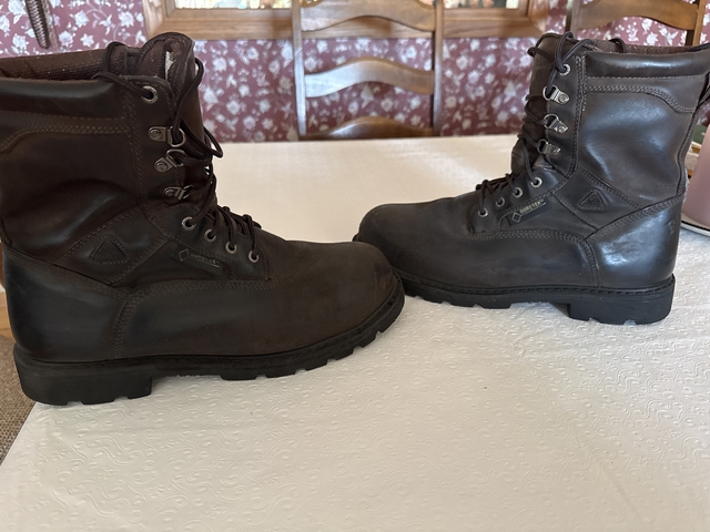 Men's 8" Ranger Gore-Tex Steel Toe (metal) - not composite. Have a couple small scuffs on toes; they are work boots. Didn't wear much, mainly in winter. Used for dock work. Dark brown in color overall in pretty good condition. Vibram soles, leather uppers with padded tongue. 600grams of thinsulate insulation. These sell new over $200.