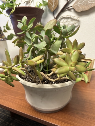 Pot of two varieties of succulents.