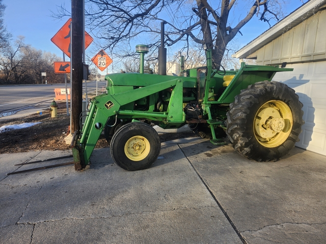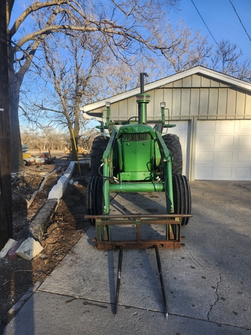 John Deere 1968 4020 Tractor with loader. Loader only comes with bale spear. Has 2 hydraulic remotes, 540/1000 pto, 3 point hitch, and 8 speed synchronized transmission. Things that were added/replaced in 2025: new seal kits in lift cylinders, new seat, led lights, new engine temp gauge, rebuilt alternator, and some new hydraulic hoses on loader. Things that are bad: fuel gauge doesn't work, rear tires are weather check/cracks, some dents on hood, missing the side screens. Been a great haying and mowing tractor. Message for any questions! 785-534-zero271