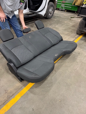 This is a New rear seat removed from a 2025 Dodge Ram 2500 Heavy Duty Pickup.