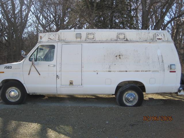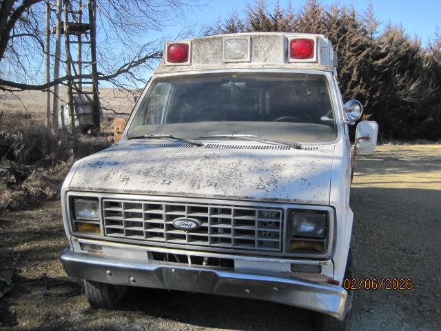 An 85' Ford E350? ambulance that does not start. Prior owner removed 4 barrel carb and plugs, but everything else looks untouched. No battery. Definitly need a deep cleaning, as mold spots cover the body,(which is straight). Front bumper is twisted. Carb, plugs, and air cleaner are laying on the floor of cab. Front seats look good, no tears. A project for sure. Bring a trailer. Located on county road north of Mankato about two miles. Firm on price. Title is included............thx!