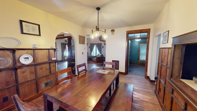 This charming 1.5-story home offers 3 bedrooms, 2 bathrooms, and a non-conforming office space, blending classic character with thoughtful design. Inside, you’ll find beautiful woodwork and built-ins that add timeless appeal throughout the home. The primary bedroom features an attached handicap-accessible shower complete with a waterfall feature, rain shower head, and traditional shower head for both comfort and convenience. Outside, the fenced-in backyard includes a back porch and a 24x30 detached two-car garage with drive-through access from the driveway through the shed to the alley. Come take a look at the charm this home has to offer—schedule your showing by contacting Trevyn Wolf at 784-422-5one55.