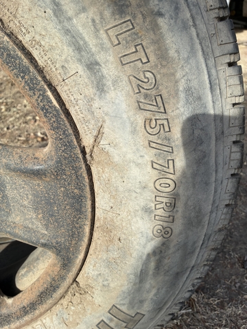 Tire LY275/70R18 believe it's a chev wheel 785-583-0061