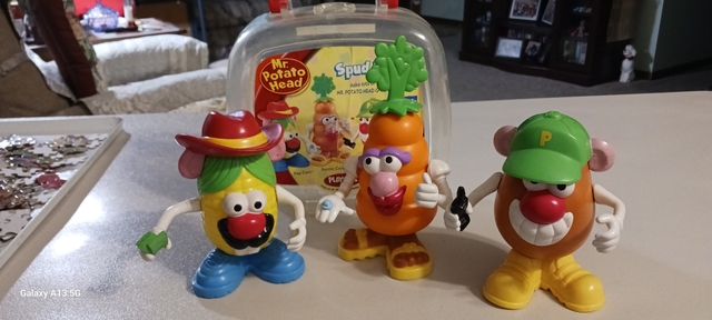 2004 Includes: 1 potato body, 1 corn body, 1 carrot body, 3 faces, 3 arms with props, 3 regular arms, 3 sets of feet. 2 hats and 1 carrot top, all in original case.
