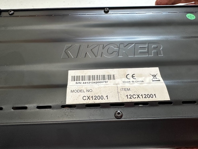 This is a Kicker CX 1200.1 Amp with 2 12" Rockford Fosgate Speakers in a homemade box. System works fine, just taken out of a car that we bought.