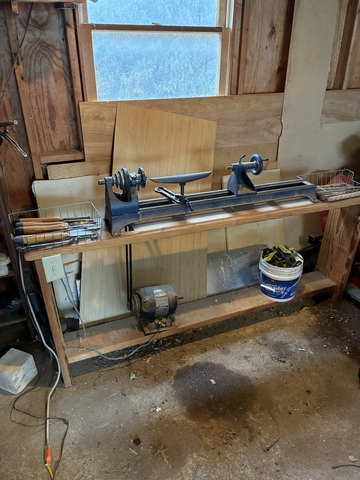 This lathe was rebuilt about 13 years ago. It is in good shape and works well. All the carving tools go with it. Motor is good. Wood bench goes with it also.