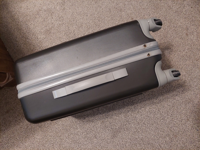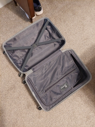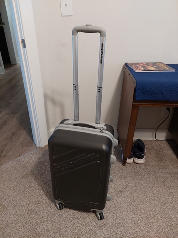 This is a Skechers hardsided spinner carry-on suitcase in good condition. The interior is pristine; the outside has a few cosmetic scuffs courtesy of United Airlines. Wheels are in excellent shape and roll and rotate perfectly.
