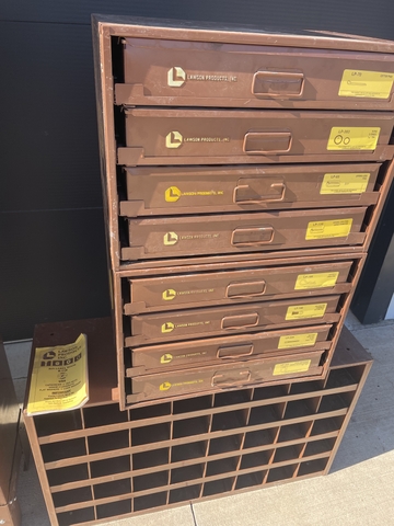 Vintage Lawson Products bolt organizers. Everything in the pictures included. Very nice condition. Pull out trays are all full. $900 cash. Located in Oakley