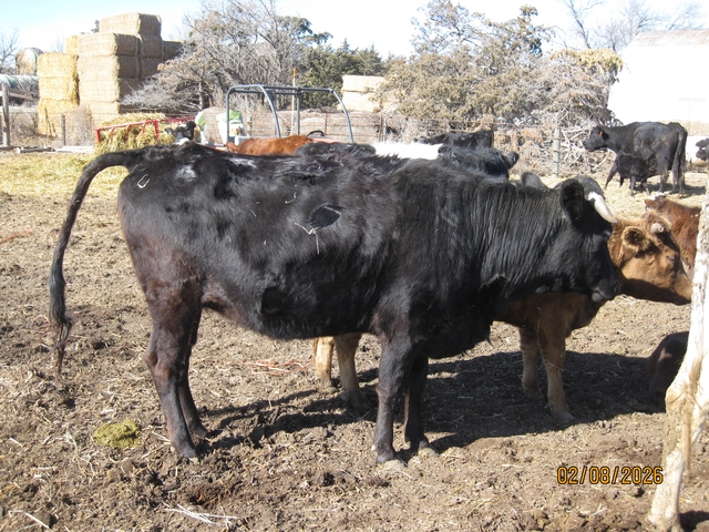 Sweet gentle heifer, will have her 1st calf in September, bred to a LBW black baldy bull, just had shots, $2900, call or text or message here, 785-743-8o65